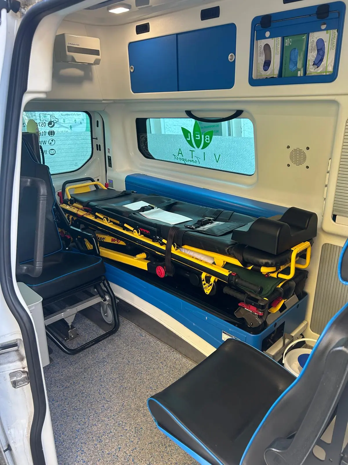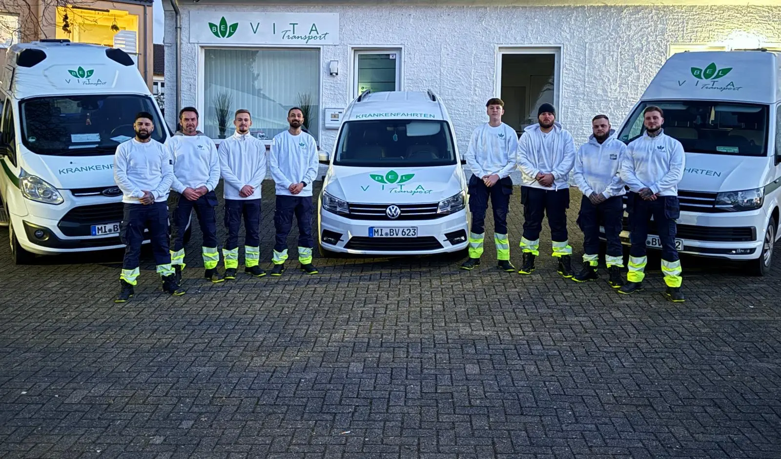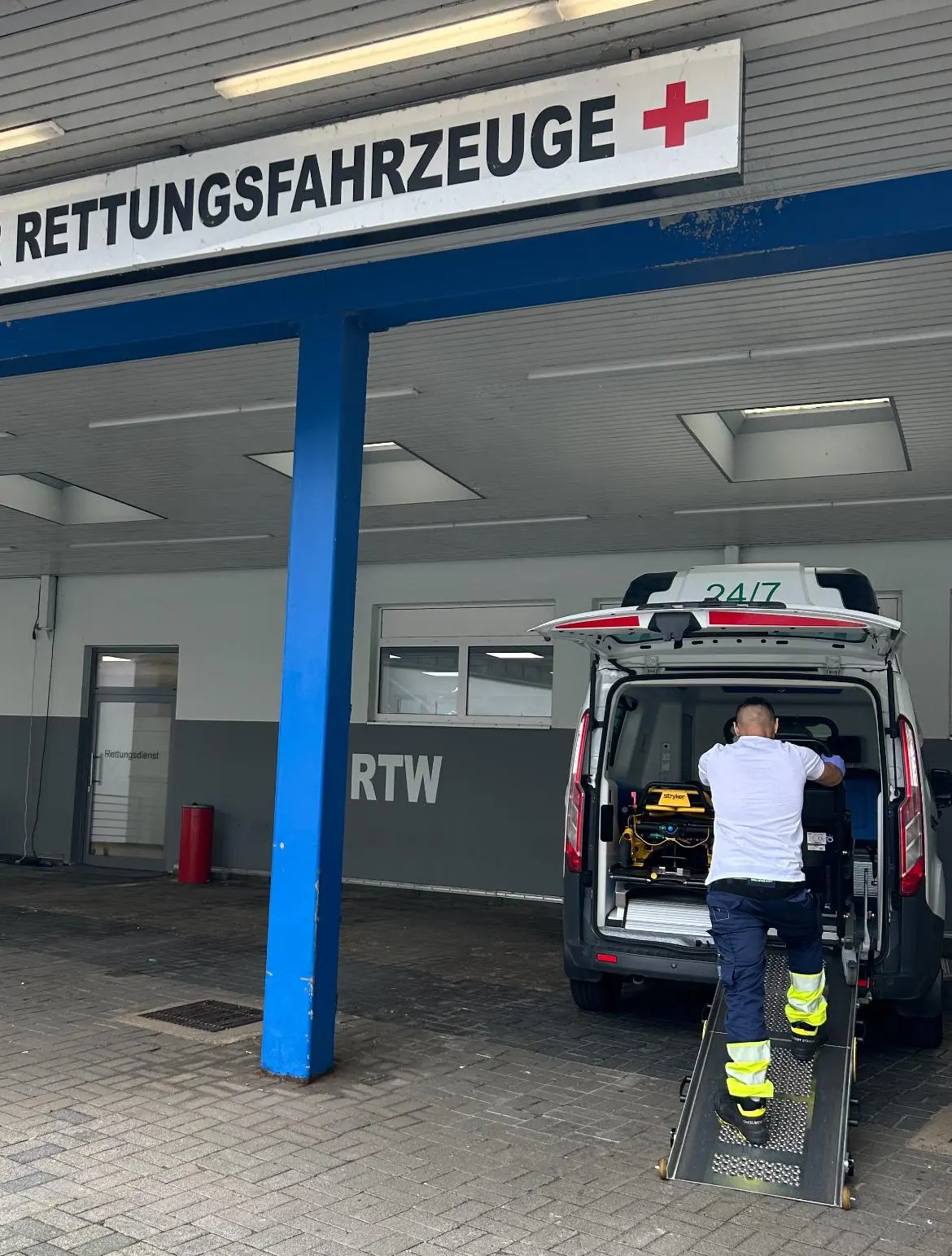 Speziell ausgestattete Fahrzeuge und geschultes Personal für den sicheren Transport von Patienten, die auf einen Rollstuhl angewiesen sind.